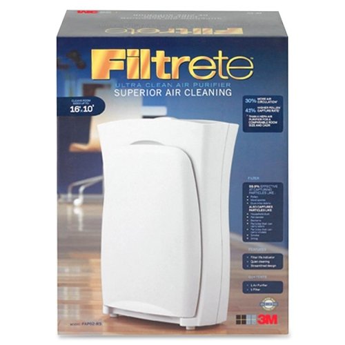 Air purifier offers more air circulation and a higher dust and pollen capture rate than a comparable HEPA Air Purifiers in rooms up to 160 square feet. Filter captures 99.9 percent of large airborne particles and allergens like pollen, mold spores and dust mite debris from the air passing through the filter. Filtrete Ultra Clean Air Purifier also features quiet operation, easy filter change, filter change indicator and three-speed fan. Replace easy-to-change filter every 90 days.